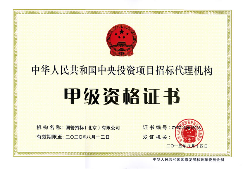中央投資項目招標代理甲級資質